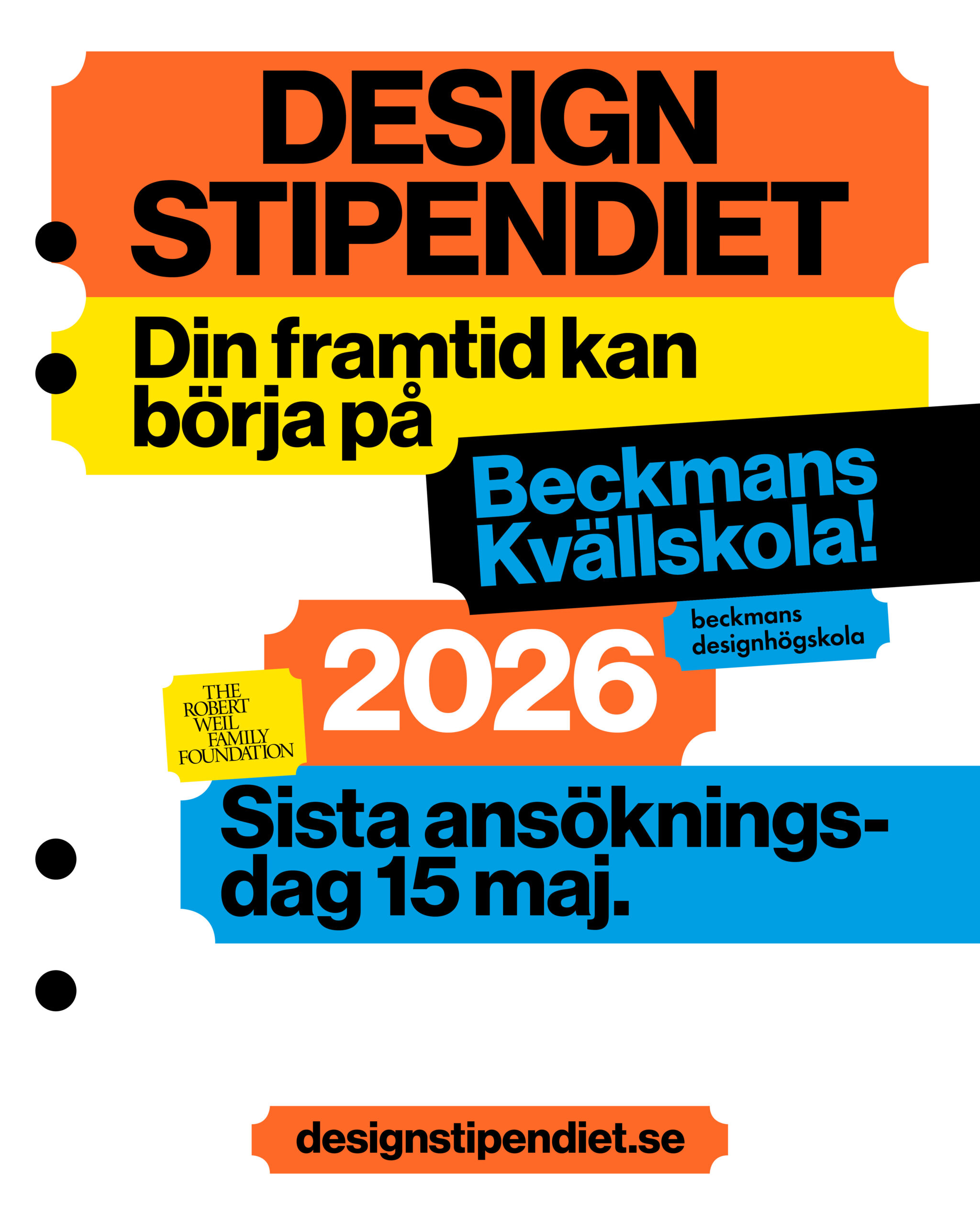 The Robert Weil Family Foundation launched Designstipendiet enable students from diverse social and economic backgrounds to attend Beckmans and pursue a career in design. The scholarship covers the full SEK 37,000 tuition to the evening school.