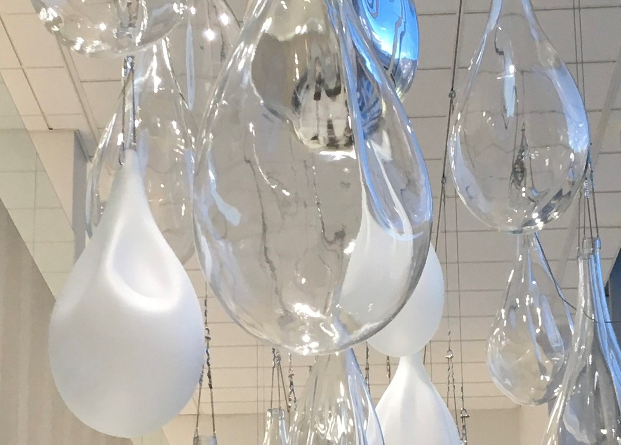 Drops is an installation piece in glass created by Ann Wåhlström specifically for the new entrance at Södertälje Hospital. Free for all to interpret. Light reflections, a forest, a lake, tears, a summer rain or whatever comes to mind.